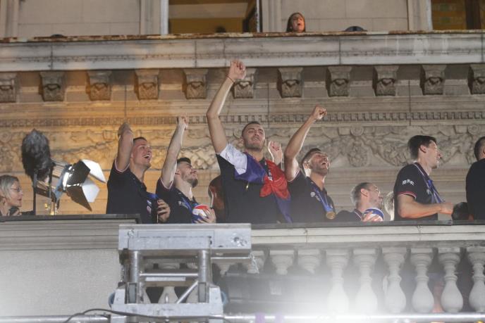 SPEKTAKL NA BALKONU: Žurka za zlatne odbojkaše! Srbija se poklonila šampionima Evrope (KURIR TV) Foto: Damir Dervišagić