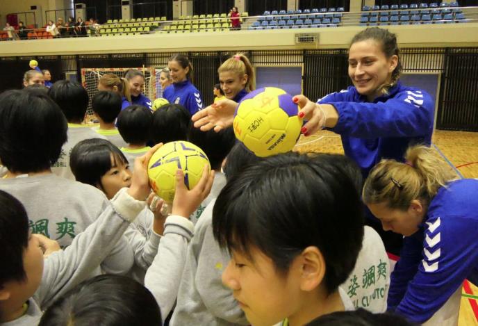 Devojke su se predstavile simpatičnoj deci Japana, a zatim i odradile i animaciju u školskoj sali, posle koje je usledila i rukometna utakmica sa klincima i klincezama iz klubova.