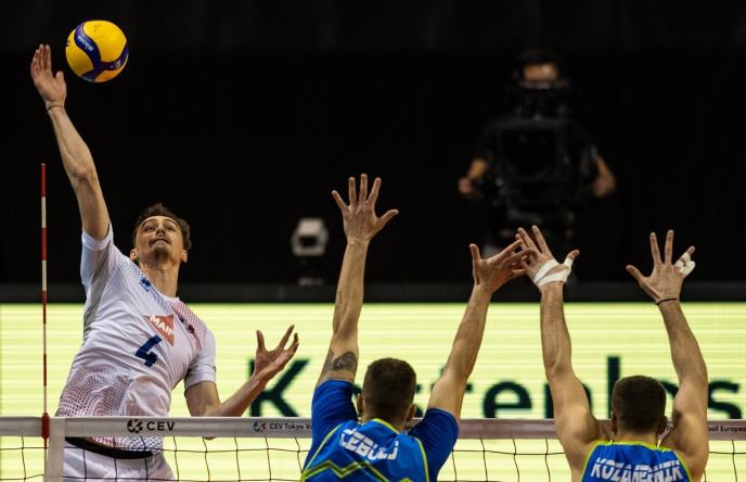 Odbojkaši Francuske plasirali su se danas u finale kvalifikacionog turnira za Olimpijske igre pošto su posle preokreta pobedili Sloveniju sa 3:2 (13:25, 22:25, 25:14. 25:21, 15:9).