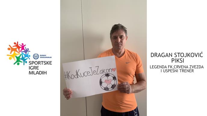 "Ponosni sam ambasador Dunav osiguranje Sportskih igara mladih već dugi niz godina. Ova manifestacija promoviše najbolje sportske i ljudske vrednosti. Nastavak sezone Igara očekujemo uskoro, stoga pripremajte se u svojim domovima, naravno jer "KodKuceJeZakon". Radujem se državnoj završnici Coca-Cola kupa u malom fudbalu, kada ćemo se opet svi družiti", istakao je Peđa Mijatović.