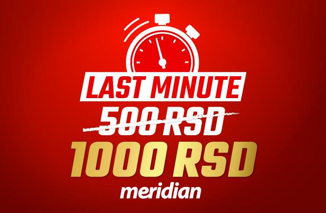 Sa Meridianom si u startu na dobitku! Za nezaboravan letnji provod kladionica Meridian spremila ti je fantastičnu promociju – iskoristi bonus od 1000 dinara bez ikakvih uslova! Ne 500, već duplo bolje od toga!