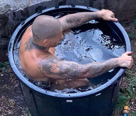 "Trebalo bi da bude "icebath" (ledena kupka) posle treninga, ali nije nego se ovako kupam u ovoj rupčagi od mesta jer nema vode, hahahaahahahah", našalio se Bakočević.