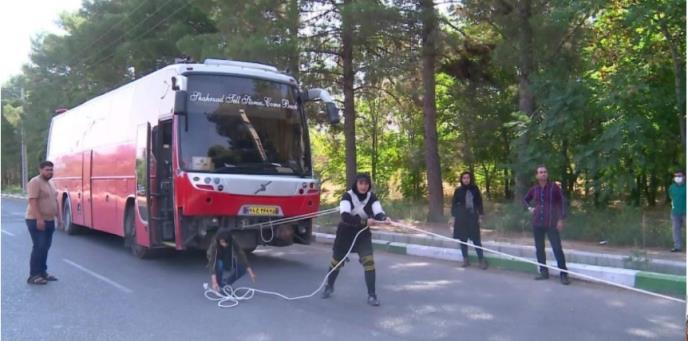 ŽENA VUČE AUTOBUS TEŽAK 18 TONA: Iranska bilderka pomera granice! VIDEO