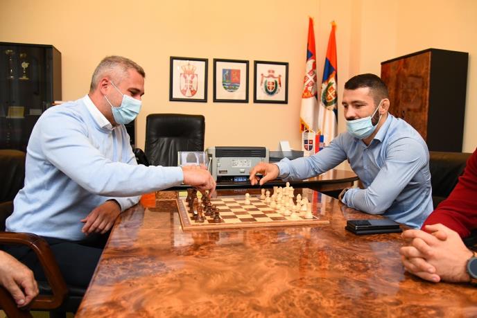 Simboličnim povlačenjem poteza na šahovskoj tabli počeo je susret novog pokrajinskog sekretara za sport i omladinu Daneta Baste i aktuelnog olimpijskog šampiona u rvanju i predsednika Sportskog saveza Srbije Davora Štefaneka.