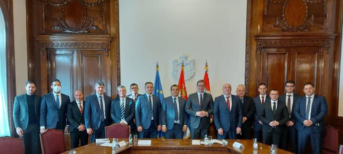 Predsednik Srbije Aleksandar Vučić primio je danas u Predsedništvu visoku delegaciju boksa, povodom osnivanja Regionalne klupske lige u boksu i organizacije Svetskog prvenstva, koje će se ukrajem novembra održati u Beogradu.