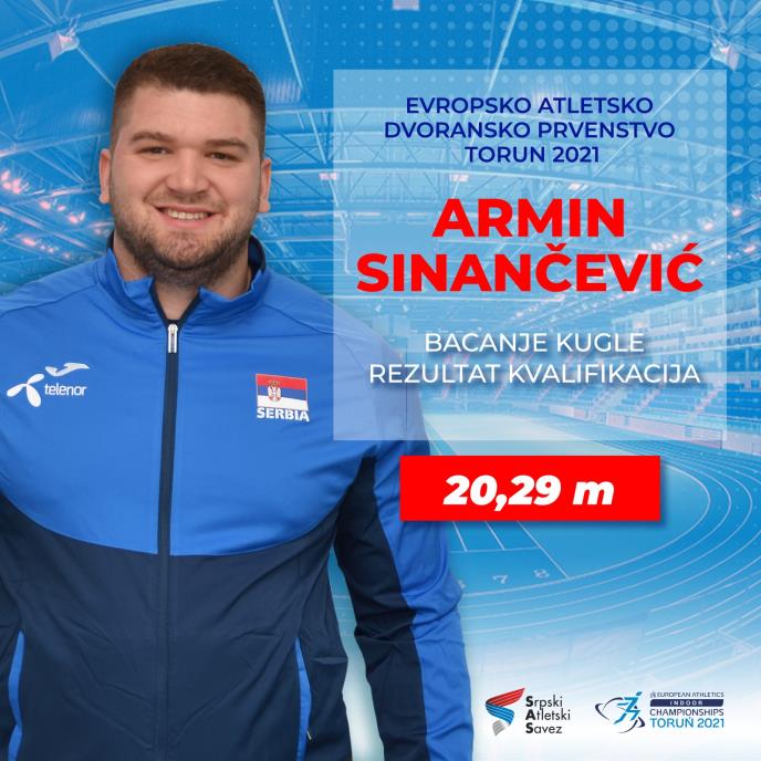 Atletičar Srbije Armin Sinančević plasirao se danas u finale u bacanju kugle na dvoranskom Evropskom prvenstvu u poljskom Torunu.