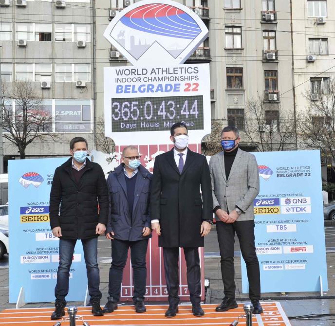 Simboličnim otkrivanjem sata "Svet na stazi" na Terazijama, tačno godinu ranije, danas je počelo odbrojavanje do početka Svetskog atletskog prvenstva u dvorani u Beogradu 2022. godine.