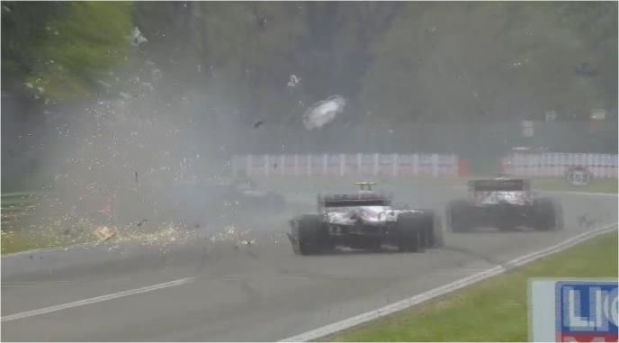 Rasel i Botas su se sudarili u 33. krugu, obojica su izleteli sa staze i udarili u zaštitni zid. Oba bolida su pretrpela velika oštećenja, delići su se razleteli po stazi, pa je trka prekinuta.