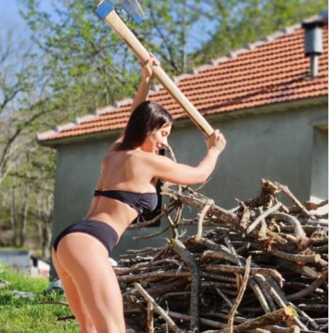 Marina često objavljuje atraktivne fotografijama na a na nekima se vidi kako u bikiniju cepa drva.