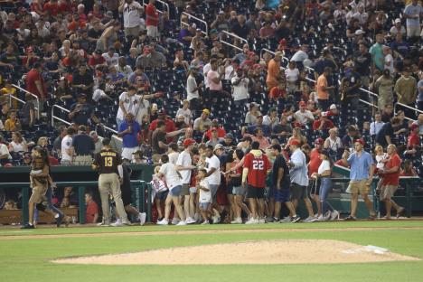 Bejzbol utakmica između tima iz San Dijega i Vašingtona prekinuta je sinoć, jer se ispred stadiona "Nešenal" Park u Vašingtonu dogodila pucnjava, što je izazvalo metež među navijačima na tribinama.