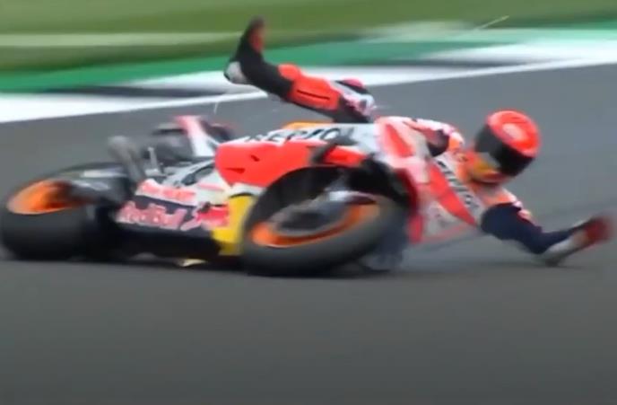 Španski motociklista Mark Markez doživeo je težak pad na treningu Moto GP-a na Silverstonu u Engleskoj.