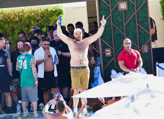 Di-džej je samo za Fjurija puštao nekoliko puta veliki hit "We are the champions". Prvi put kada su se začili ti zvuci, Tajson je skinuo majicu i ljubio sve znane i neznane oko sebe. Potpuno je bio u transu.