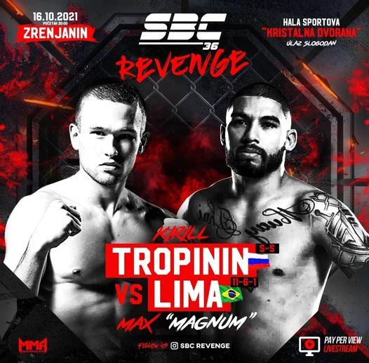Mladi ruski borac koji predstavlja Secutor akademiju iz Beograda imaće jedan od najvećih ispita karijere protiv iskusnog Brazilca. Tropinin će pokušati da stigne do petof profi trijumfa protiv iskusnijeg Brazilca, koji će na SBC 36 Revenge manifestaciji tražiti dvanaestu pobedu u karijeri!