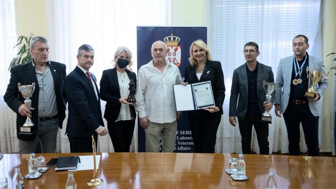 Ministarka je čestitala članovima Šahovske reprezentacije slepih i slabovidih na osvojenim medaljama i istakla da je to dokaz da barijere nisu nepremostive, kada postoji motivacija i rešenost da se uspe i bori za svoju zemlju.