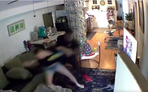 Na društvenim mrežama je objavljen snimak sigurnosnih kamera iz njegovog doma na kome se vidi kako divljački i brutalno mlati suprugu, dok sve to gleda njihovo dete s kauča.