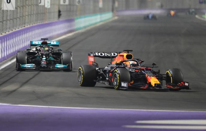 Vozač Mercedesa Luis Hamilton pobedio je večeras u trci Formule 1 za Veliku nagradu Saudijske Arabije u Džedi i izjednačio se u generalnom plasmanu na prvom mestu sa Maksom Verstapenom iz Red Bula.