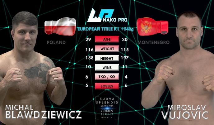 22:10 GLAVNI MEČ 8. Miroslav Vujović (MNE) - Mikal Blavdivič (POL) K1, +94 kg, 5 x 3 min