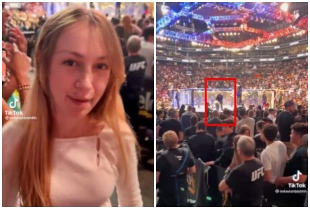 Devojka, za koju se sumnja da je bila u alkoholisanom stanju, dobila je jednu suludu ideju na UFC spektaklu 274 - odlučila je da pokuša da uđe u kavez sa borcima.