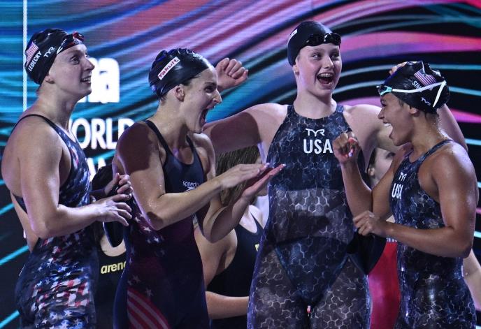 Američka štafeta je do zlatne medalja stigla s vremenom 7:41,45 minuta, što je ujedno i novi rekord svetskih prvenstava.