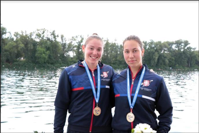 Srpske juniorke Dina Bacelj i Dunja Stanojev osvojile su zlatnu medalju u dvosedu na 500 metara na Evropskom prvenstvu za juniore i mlađe seniore koje se održava na Adi Ciganliji.