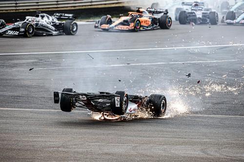 Mali kontakt je ubrzo "porastao", Žou i Rasel su ušli jedan u drugog, što je rezultiralo time da se vozilo Kineza okrene naopkako, te da klizi po stazi. Ovaj sudar je ubrzo i ostale vozače doveo u situaciju da naprave nekoliko manjih sudara.