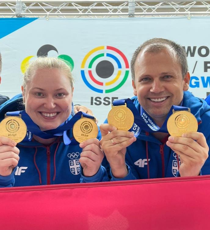 Srpski reprezentativci u streljaštvu Zorana Arunović i Damir Mikec osvojili su danas zlatnu medalju u takmičenju miks parova vazdušnim pištoljem na Svetskom kupu u Čangvonu.