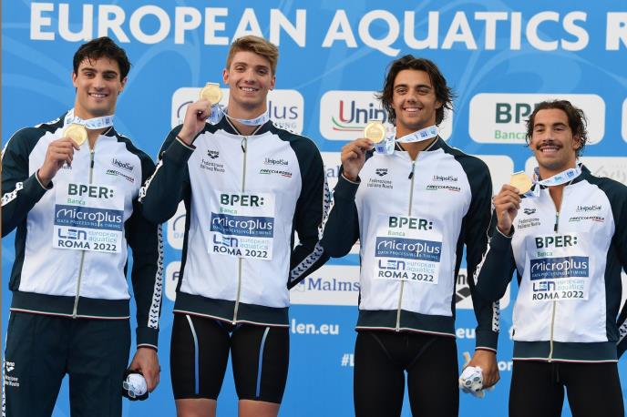 Italijanska muška plivačka štafeta na 4x100 metara slobodnim stilom osvojila je danas zlatnu medalju na evropskom prvenstvu u Rimu.