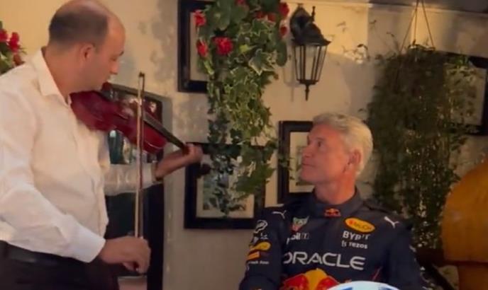 Majstor na violini je odvirao Kultardu ono što ovaj verovatno najviše voli da čuje - zvuk motora formule i oduševo gosta.