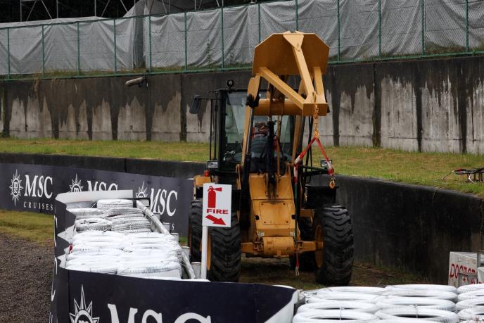 Pada jaka kiša, vidljivost je katastrofalna i trka je prekinuta već u trećem krugu nakon što se Ferarijev Karlos Sains okrenuo na stazi.