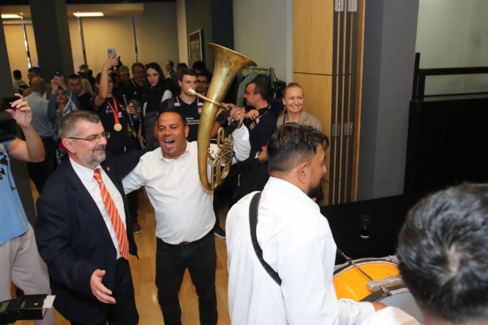 FEŠTA NA DOČEKU ODBOJKAŠICA: Trubači iznenadili šampionke! Predsednik saveza kitio muziku VIDEO