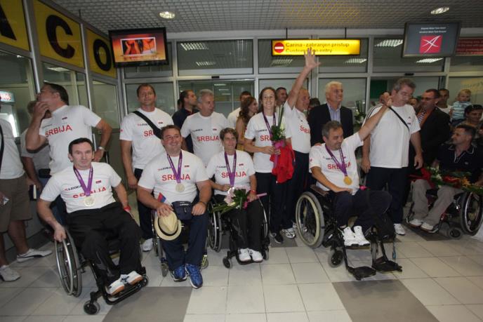 BEOGRAD - Paraolimpijska reprezentacija Srbije vratila se u Beograd posle uspešnih nastupa na Olimpijadi u Londonu. Paraolimpijce, čiji je let kasnio u dolasku, dočekali su rodbina, prijatelji i trubači, zaduženi za veselu atmosferu.