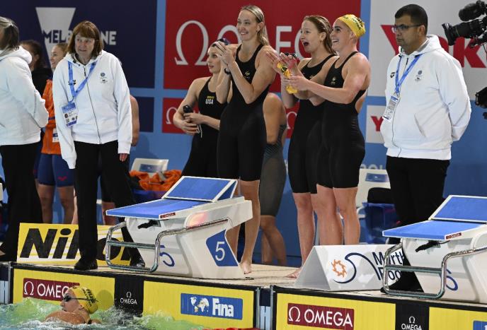 Ženska plivačka štafeta Australije osvojila je zlatnu medalju i oborila svetski rekord u trci na 4x200 metara slobodnim stilom na Svetskom prvenstvu u malim bazenima u Melburnu.