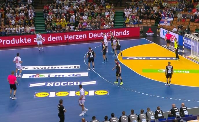 41. minut - Nemci ponovo lagano pogađaju sa igračem više, Knor je strelac - 23:28. Nemci su postigli devet od 28 golova sa pozicije pivota. Pešmalbek pogađa - 24:28.