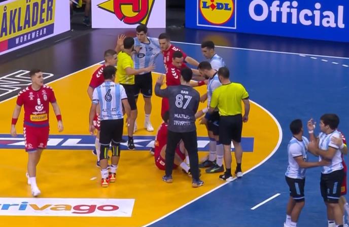 28. minut - Prekid izazvan tučom igrača. Argentinci su inicirali haos. Borzaš je grubo fauliran u prodoru, a onda je krenuo haos.