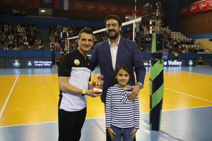 Njemu je specijalno priznanje ispred OK Crvena zvezda uručio predsednik Dragan Kilibarda, pre početka utakmice između crveno-belih odbojkašica i turskog kluba Vakifbank, čiji je Gvideti trener.