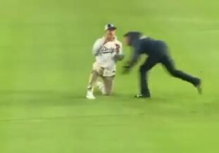 Jedan navijač Los Anđeles Dodžersa uleteo je na teren sa najboljom namerom, želeo je da svojoj devojci priredi spektakl za pamćenje, međutim, nije baš sve krenulo po planu.