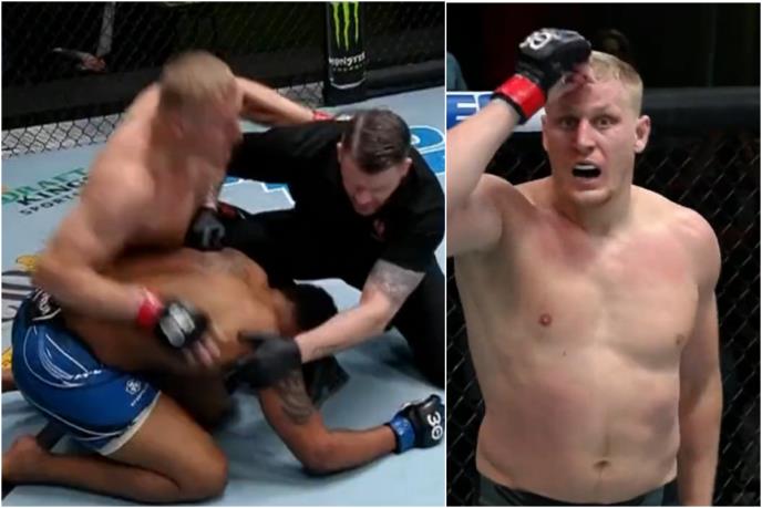 Nakon tri minuta borbe, ruski borac je aperkatom pogodio rivala u bradu, time ga oborio na pod, a sudija je nakon niza silovitih udaraca morao da prekine borbu.