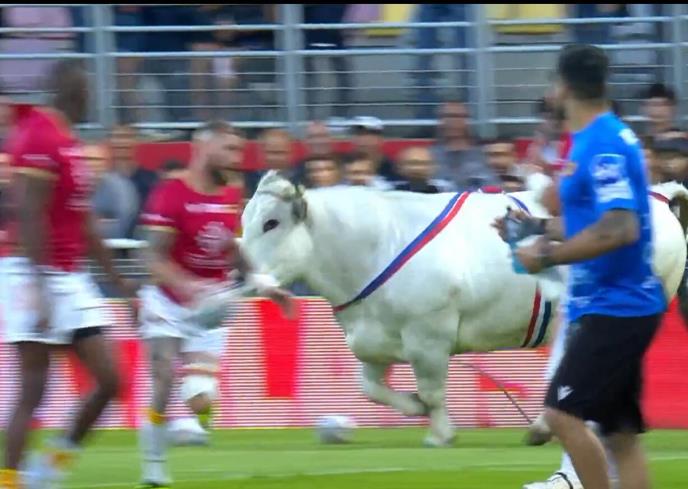 DA LI JE OVO MOGUĆE?! Igrači panično bežali po terenu od POMAHNITALOG BIKA! Životinja videla crvene dresove i nastao je haos VIDEO