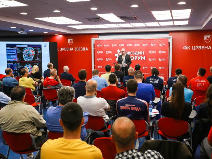 – Nedavno smo na našoj Marakani, koja danas izgleda kao lepo i veliko gradilište, imali priliku da proslavimo šestu uzastopnu titulu FK Crvena zvezda, treću duplu krunu u nizu i direktan plasman u Ligu šampiona. Velika i značajna potvrda dobrog i kvalitetnog rada u Crvenoj zvezdi. Prethodnih dana smo imali još jedan lep vikend u Zvezdi. Zamolio bih vas da lepim aplauzom pozdravimo trenere koji su ovog vikenda učinili da naše atletičarke osvoje po 22. put Kup države, a atletičari 44. put, da pioniri Fudbalskog kluba osvoje šampionsku titulu, a rvačice u juniorskoj konkurenciji Prvenstvo Srbije. Ne bi trebalo zaboraviti ni 23. titulu šampiona države košarkaša Crvene zvezde, osmu u nizu. Danas nisu stigli da dođu jer treniraju i spremaju se za finale ABA lige. Verujem da ćemo na ovom forumu steći nova iskustva i nova znanja. Biti deo Crvene zvezde, od najmlađih pa do seniorskih selekcija, je prelep osećaj i zaista vodimo računa i uvek pokušavamo da pronađemo dobar razlog za radost i za napredak – istakao je Avramović.