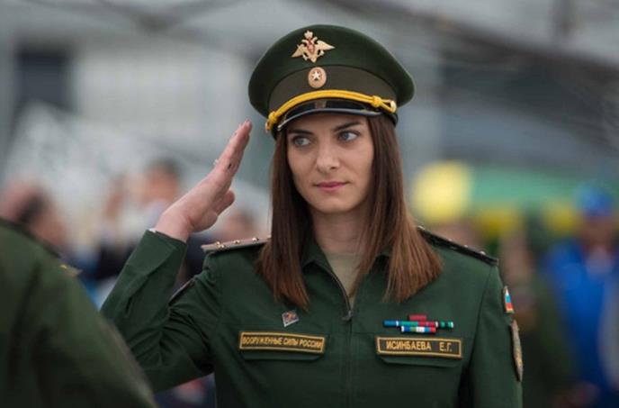 Jelena Isinbajeva (41) je major Oružanih snaga Ruske Federacije. Takođe, trostruka je svetska i dvostruka olimpijska šampionka (2004, 2008). Od 2016. godine u član je komisije sportista MOK-a.