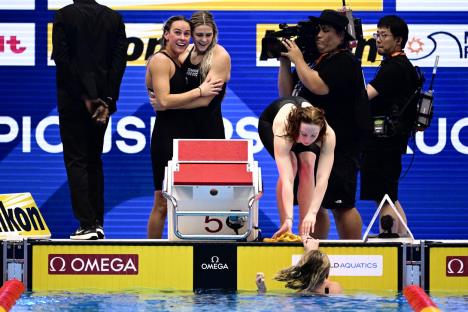 Ženska plivačka reprezentacija Australije postavila je danas novi svetski rekord i osvojila zlatnu medalju u štafeti na 200 metara slobodnim stilom na Svetskom prvenstvu u Fukuoki.