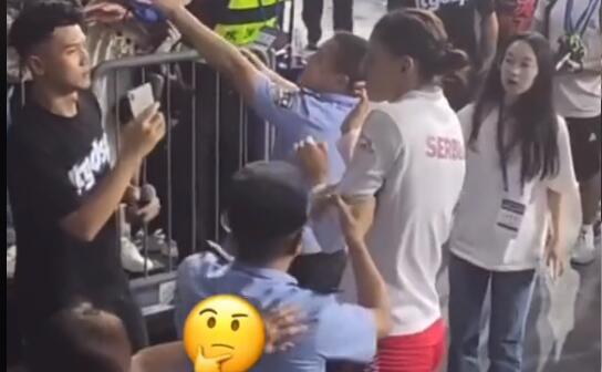 Dok je jedan navijač "svim silama" pokušavao da dođe do Tijaninog autograma, na scenu je nastupio jedan nervozni policajac, koju je srpsku odbojkašicu uhvatio za ruku i pokazao joj da se uputi ka svlačionici.