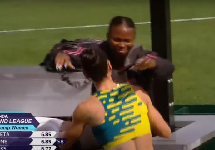 Prišla je do Nigerijke, a kada je objavljen rezultat, pozdravila je publiku i odmah nastavila da teši povređenu atletičarku, razgovara sa njom i da je ohrabri.