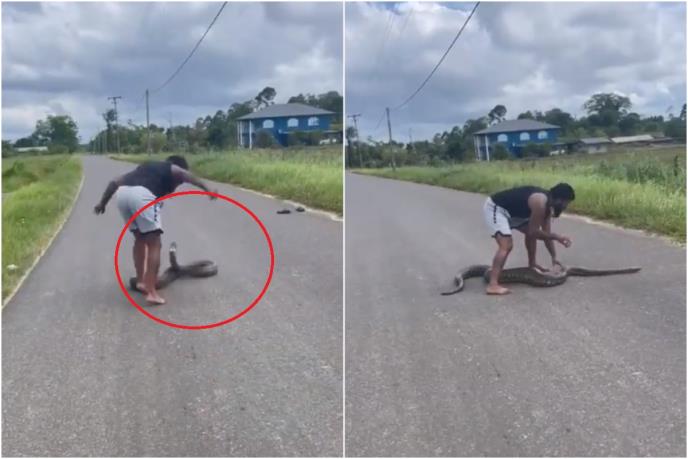 Surinamsko-holandski bokser nije dozvolio zmiji da pobegne sa ulice, dovukao ju je na put, uspeo da izbegne njene napade, a onda je uhvatio i odneo u kamion.