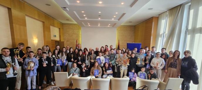Brojni učenici primili su diplome i pehare za svoje zaslužene uspehe koji su postigli trudom i radom i tako predstavili na najlepši način svoju školu i Opštinu.