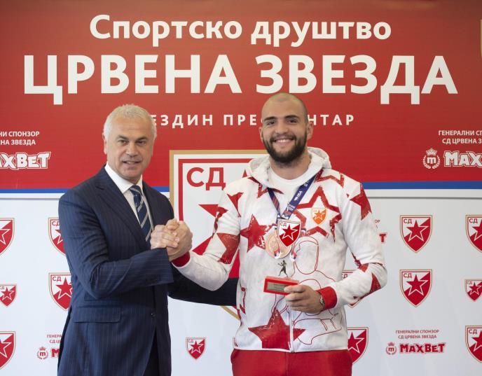 Predsednik Sportskog društva Crvena zvezda Zvezdan Terzić uručio je plaketu bokseru Veljku Ražnatoviću.