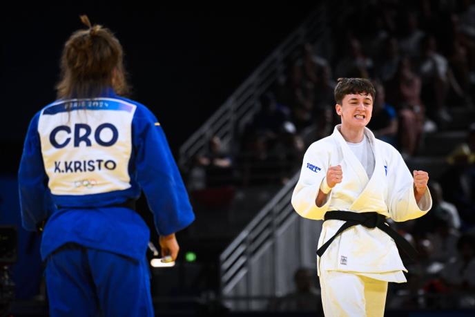 Dok su i jedna i druga pokušale da osvoje zlatni poen, Hrvatica je oborila predstavnicu Kosova, legla na tlo i radovala se zbog pobede "vazarijem", pobedničkim bodom zarađenim rušenjem protivnice.