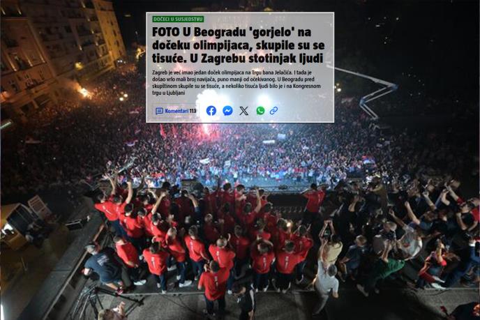 "Zagreb je već imao jedan doček olimpijaca na Trgu bana Jelačića. I tada je došao vrlo mali broj ljudi, puno manji od očekivanog. U Beogradu pred skupštinom skupile su se hiljade", piše portal "24 sata".