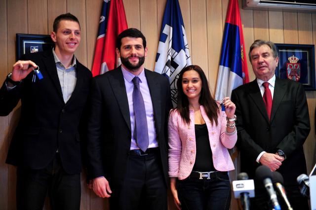 BEOGRAD - Predsednik opštine Novi Beograd Aleksandar Šapić uručio je danas ključeve stanove olimpijskoj vicešampionki u streljaštvu Ivani Maksimović i osvajaču srebrne medalje sa prvenstva Evrope u altetici Emiru Bekriću.