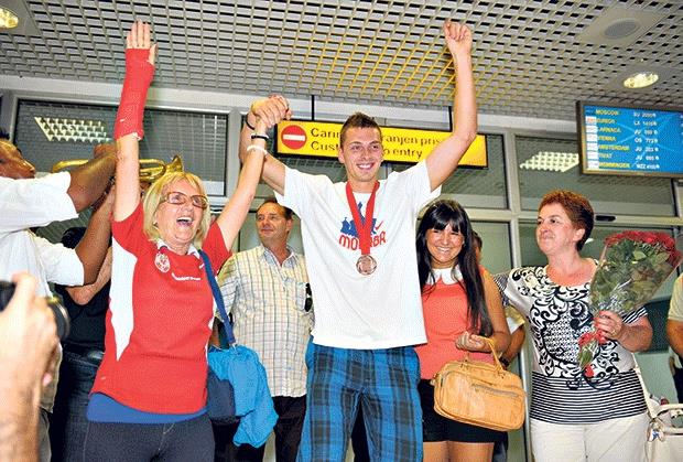 BEOGRAD - Srpski atletičar Emir Bekrić doputovao je oko 14,00 časova na aerodrom Nikola Tesla u Beogradu gde mu je priređen svečani doček.